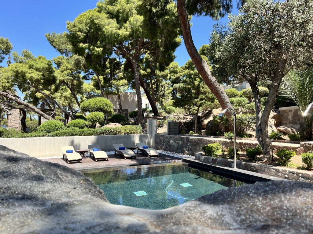 - Εξωτερική πισίνα με αλμυρό νερό και gazebo δίπλα στη θάλασσα για θεραπείες ζευγαριών