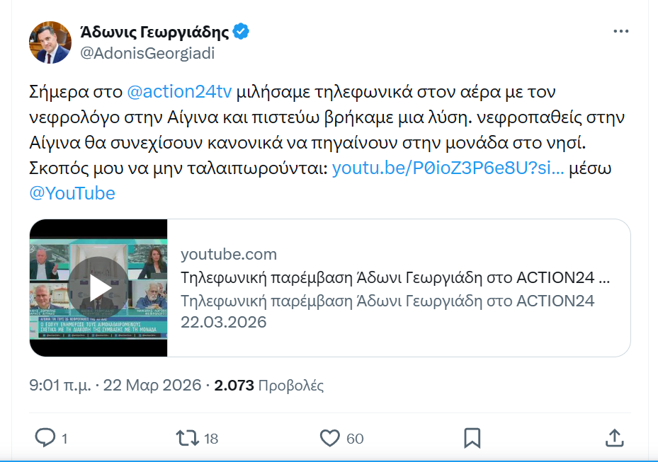 Για τους κατοίκους της Αίγινας και ιδιαίτερα για τους νεφροπαθείς, η εξέλιξη αυτή σηματοδοτεί το τέλος μιας περιόδου αβεβαιότητας και την επιστροφή στην κανονικότητα.
