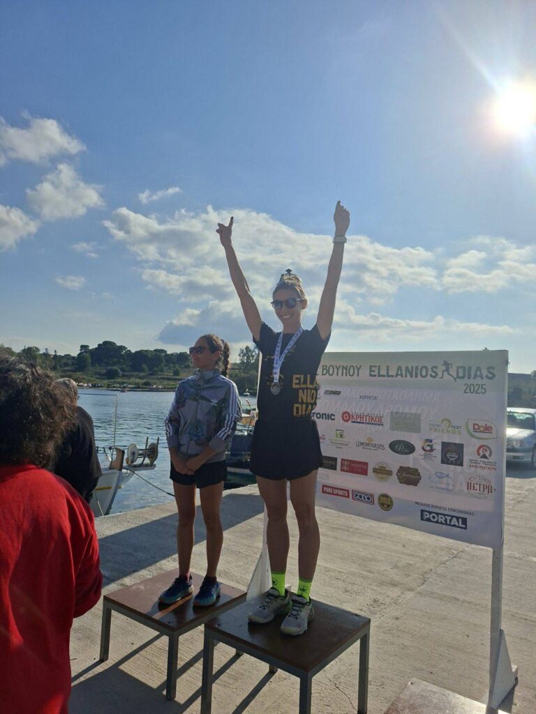 Ιδιαίτερη στιγμή του αγώνα ήταν η εμφάνιση της Κατερίνας Σμέρνου, η οποία τερμάτισε πρώτη στα 11 χιλιόμετρα όχι μόνο στις γυναίκες αλλά και στη γενική κατάταξη. «Δεν θυμάμαι να το έχω ξαναδεί αυτό, ειδικά σε αγώνα βουνού», μας λέει. «Πιστεύαμε στην πρώτη θέση στις γυναίκες, αλλά αυτό μας ξεπέρασε». Για τον ίδιο, η σημασία της επιτυχίας αυτής ξεπερνά το αγωνιστικό κομμάτι. «Η Κατερίνα είναι γυμνάστρια στα σχολεία του νησιού, έρχεται καθημερινά σε επαφή με τα παιδιά μας και πρέπει να είναι πρότυπο για όλους μας — για το πείσμα, την προσήλωση και το πάθος της».